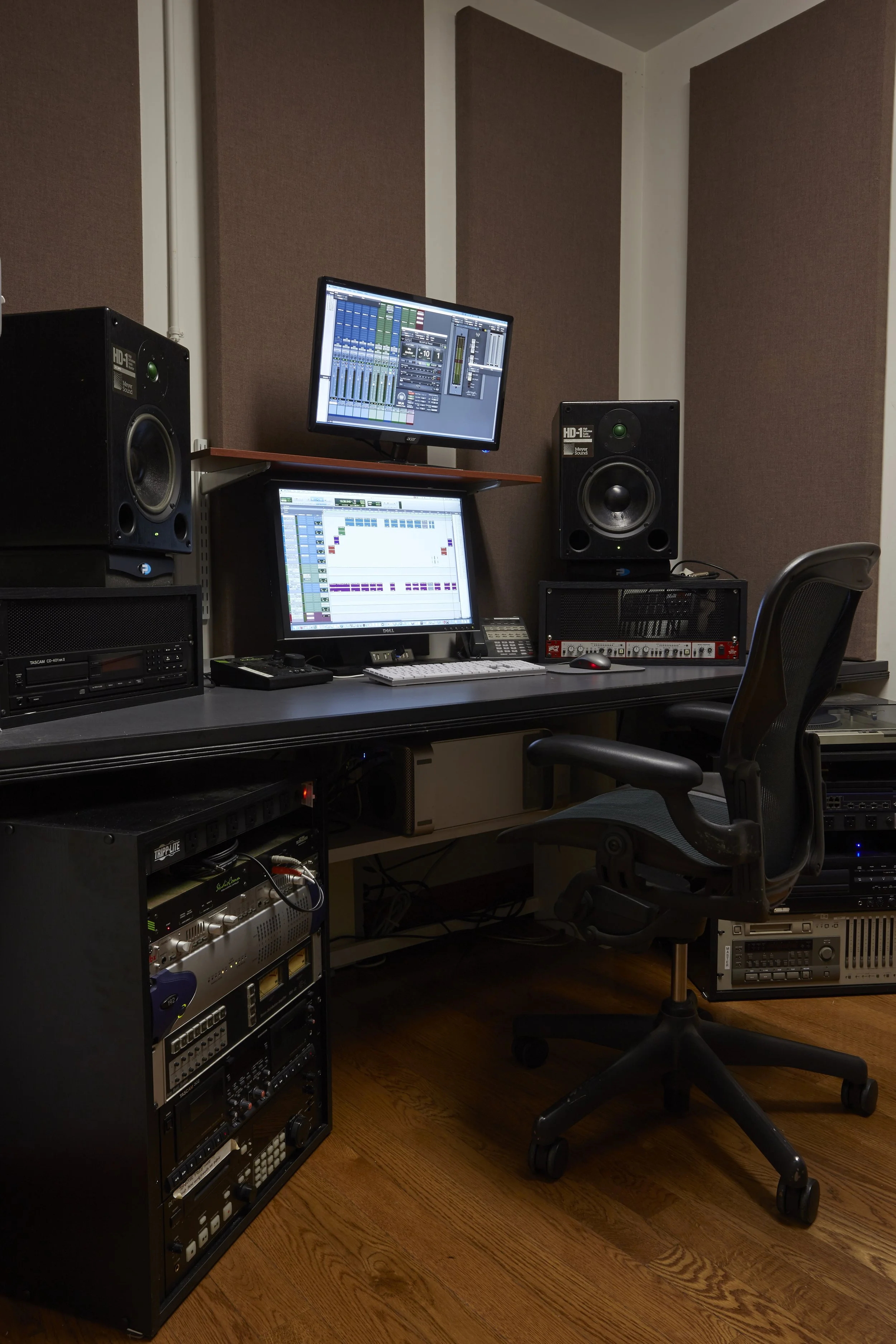 The Edit Room is designed with editing and mixing in mind. When long edit sessions are needed, this is a cost effective alternative to working in the Control Room. All of our rooms are networked together, so work can be transferred easily from editing to mixing or mastering rooms.